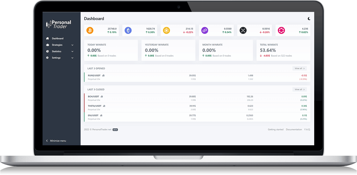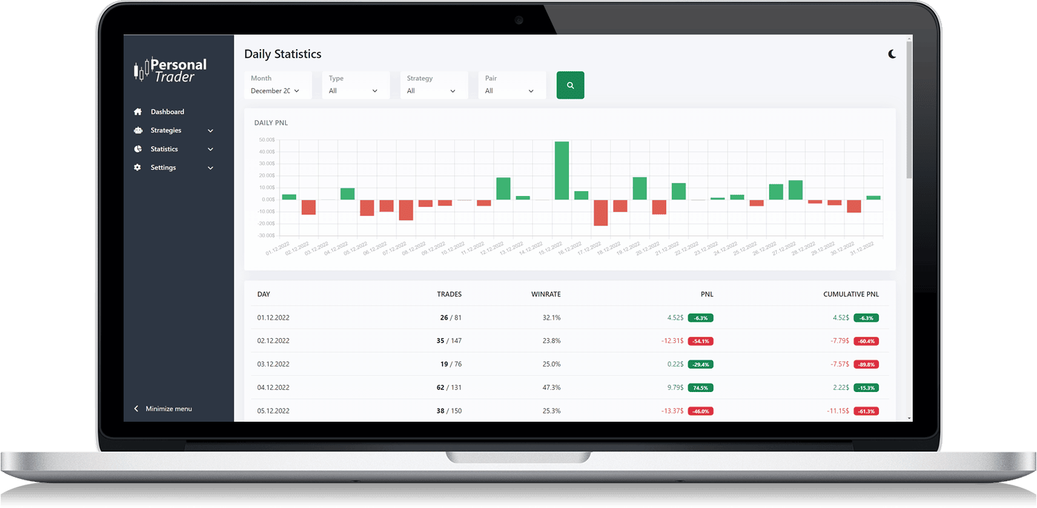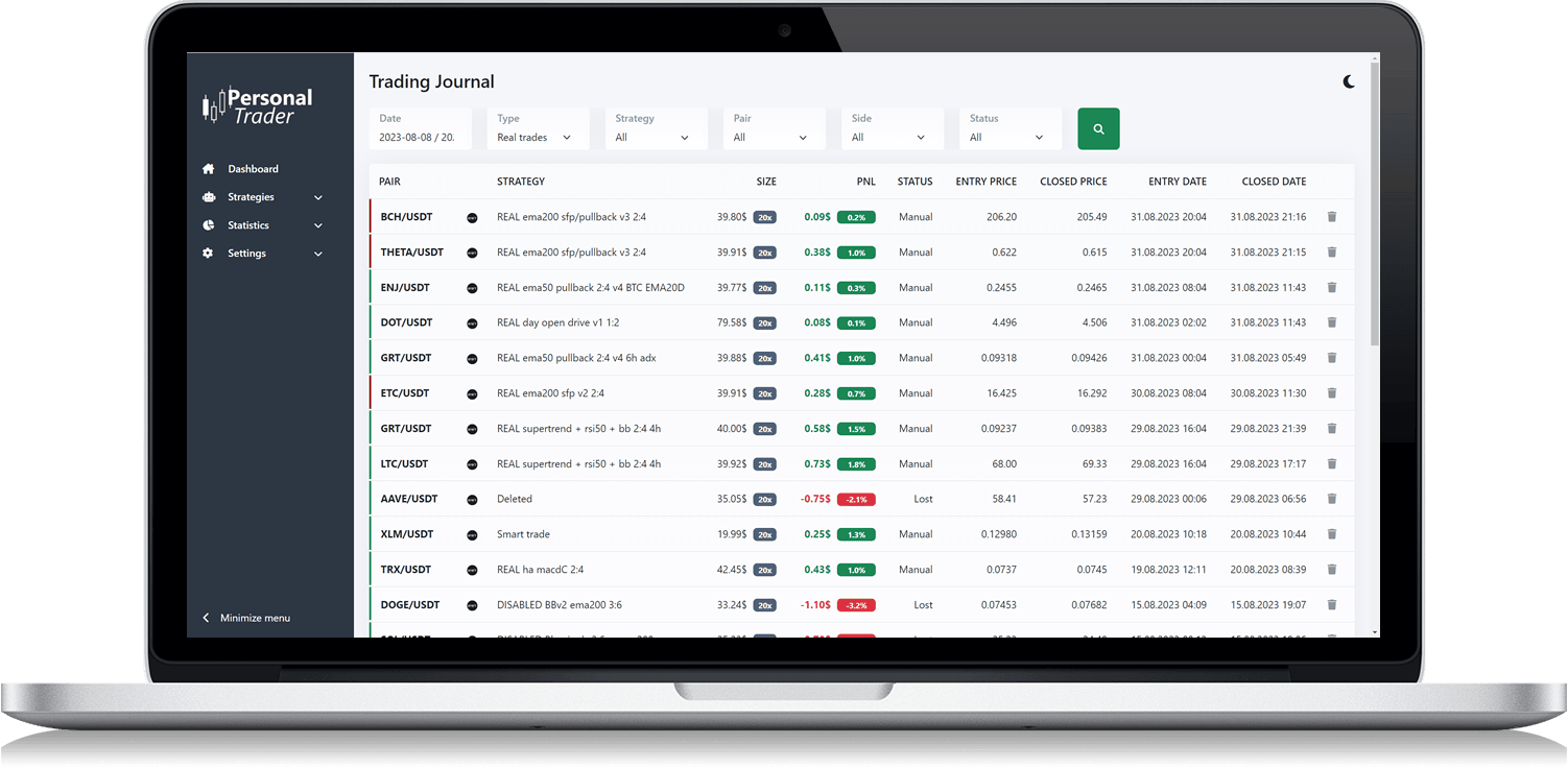 Automatically fill your Trading Journal with wins, losses, profits and winrate.